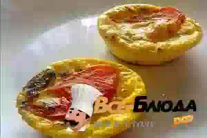 3. Готовый омлет с яйцом, приготовленный в силиконовых формочках в духовке переложить на блюдо, украсить свежими овощами. Можно добавить зелень, сметану.