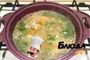 7. В готовый суп переложить кусочки рыбы без костей, поджаренный в масле лук и довести до кипения. Сразу снять кастрюлю с огня, чтобы бульон не помутнел.