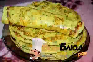 Творожные блины с зеленью Ингредиенты: растительное масло - 40 мл укроп свежий - 1 пучок сливочное масло - 50г соль - 1 щепотка молоко - 500 мл мука - 250-260г сахар - 1-2 ч.л. творог - 350г яйцо - 4 шт. Как приготовить "Творожные блины с зеленью"