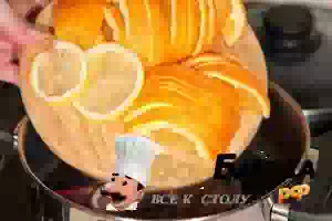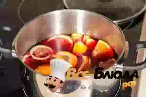 2. Апельсин и лимон вымыть, нарезать дольками и положит в кастрюлю. Проварить 1-2 минуты.