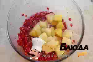 3. Добавить к гранату кусочки консервированного ананаса вместе с сиропом.