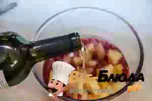 4. Следом налить светлое сухое вино. По рецепту надо добавить еще и газировку, но мы не стали.