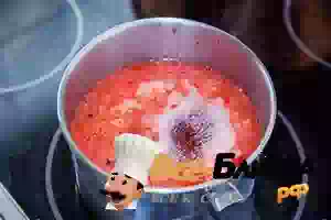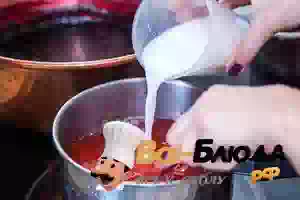 4. Отделить мезгу, отвар развести оставшейся водой, довести до кипения.