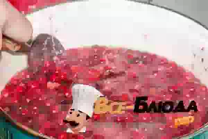 1. Клюкву перебрать, промыть и опустить свежую ягоду на 2-3 минуты в кипящую воду, после чего ягоды размять ложкой и прокипятить всю смесь 5-10 минут.