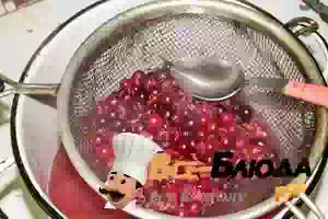 2. Выловить ягоды и протереть через сито. Сок процедить, дать полностью стечь в кастрюлю.