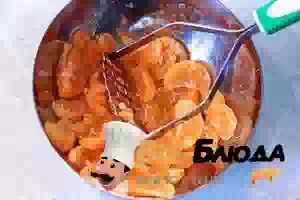 2. Очищенные мандариновые дольки сложить в миску и немного помять толкушкой.