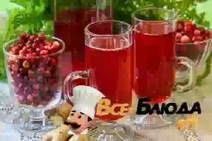 6. Слить клюквенный отвар через металлическое сито. Охладить и можно разливать по стаканам. Клюквенный морс с имбирем готов.