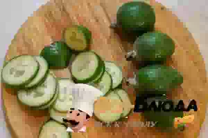2. Фейхоа промыть, срезать кончики, оставшуюся часть плода порезать дольками. Добавить фейхоа в графин.