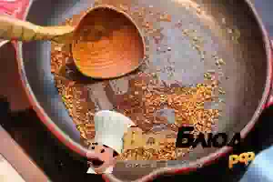 3. Обжарить, помешивая ложкой, до насыщенного коричневого цвета. Чем сильнее обжарка, тем темнее напиток.