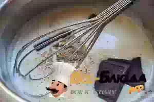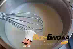 3. Влить во взбитый желток немного горячего молока, продолжая работать венчиком, чтобы желток не свернулся. Затем перелить яично-молочную смесь обратно в ковш с молоком и размешать. Вернуть на плиту и, помешивая венчиком, проварить на маленьком огне 2-3 минуты, не давая закипеть. Иначе желток свернутся!