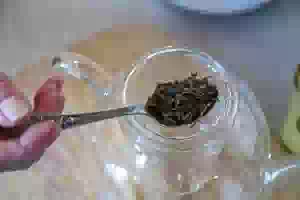 3. В заварочный чайник засыпать зеленый чай.