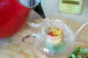 7. Прикрыть чайник крышкой и оставить настаиваться 5-10 минут. Готовый зеленый чай с мятой и персиком разлить по чашкам и пить с удовольствием.