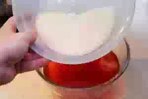 6. Добавить к настою костяники сахар и перемешать до полного растворения кристаллов.