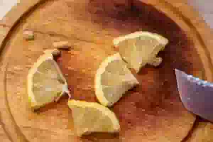 7. Порезать одну дольку лимона на четвертинки.
