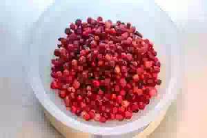 1. Клюкву перебрать, выбросить листочки-веточки и хорошо промыть под краном. Откинуть ягоды на дуршлаг, чтобы убрать излишек влаги.