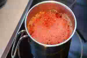 5. Жмых от обеих ягод залить в кастрюле питьевой водой, довести до кипения и проварить 5 минут.