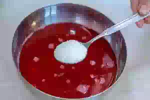 8. Добавить сахар, хорошо размешать, чтобы растворились кристаллы. Морс из калины с клюквой готов.