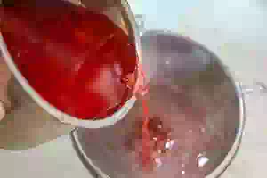7. Остывший отвар процедить и перелить в сок-пюре от калины и с клюквой.