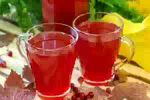 7. Остывший отвар процедить и перелить в сок-пюре от калины и с клюквой.