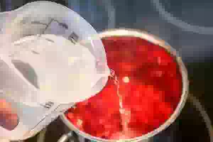 5. Жмых от обеих ягод залить в кастрюле питьевой водой, довести до кипения и проварить 5 минут.