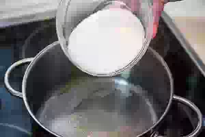 2. Воду довести до кипения и всыпать сахар.