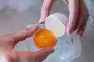 2. Яйцо вымыть, разбить и отделить желток от белка. Белки использовать в других рецептах.