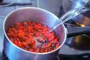 2. Пересыпать подготовленный шиповник в небольшую кастрюлю или ковш, залить кипятком. Если лень взвешивать ягоды и отмерять воду, берите их на глаз в соотношение 1:1. Оставить шиповник в таком виде на сутки. В некоторых рецептах предлагают довести воду с шиповником до 80С и томить, не снимая с плиты, 30 минут.