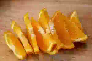 2. Апельсин вымыть и обтереть досуха. Нарезать дольками половину апельсина.