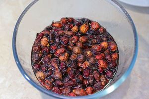 1. Сушеный шиповник промыть, засыпать в миску и залить питьевой водой. Оставить на несколько часов или на ночь, чтобы ягоды стали мягкими.