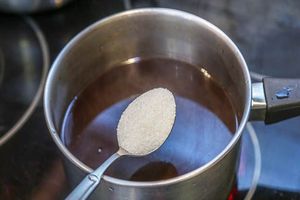4. Поставить отвар шиповника на плиту, добавить сахар по вкусу и довести до кипения.