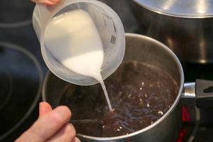 5. Тонкой струйкой влить растворенный в воде крахмал, помешивая отвар ложкой. Проварить, пока отвар не начнет густеть. На это уйдет примерно 3-5 минут. Снять кисель из шиповника с плиты. Можно пить сразу или дать напитку остыть. Тогда шиповниковый кисель станет гуще.