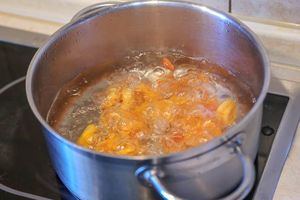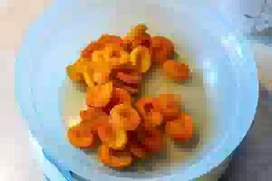 1. Курагу несколько раз промыть в теплой воде и переложить в кастрюлю.