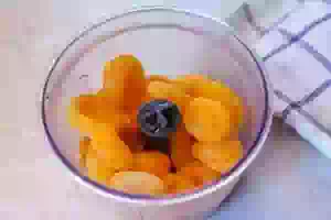 3. Вареную курагу из кастрюли переложить в чашу блендера и пробить до получения однородной массы.