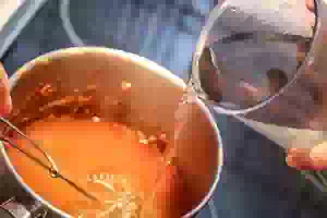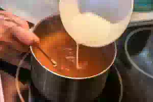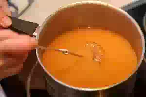 4. В кипящий отвар боярышника тонкой струйкой влить крахмал, постоянно размешивая, чтобы не образовалось комочков.