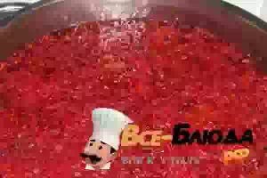 5. Делаем сироп из воды и сахара, в него добавляем пюре, которое осталось от выжиманий и варим на среднем огне около 7 минут. Далее снимаем с огня, даем остыть вареву, процеживаем и добавляем сок.