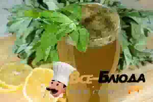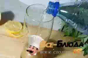 4. Мятный джулеп, Шаг 04 Вылить минеральную воду в мятное пюре. Через ситечко разлить мятный джулеп по стаканам, украсить лимонными дольками или листочками мяты.