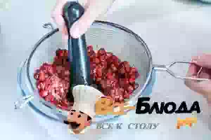 1. Землянику перебрать, оборвать с ягод плодолистики. Подготовленную землянику протереть через сито, чтобы получилось пюре с минимумом косточек.