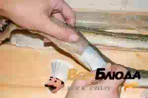 1. Для этого блюда отберите маленьких угрей. Удалите головы, снимите кожу, точнее стяните ее чулком, предварительно чуть-чуть подрезав кожу у основания головы угря.
