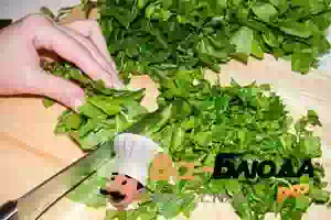 4. Пряные травы - мяту, шалфей, петрушку и щавель - мелко порубите.