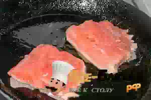 1. Филе семги чуть присолить, поперчить, сбрызнуть уксусом и оставить на 15-20 минут.