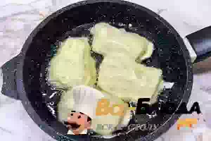 7. Каждый кусочек рыбного филе опускаем в кляр и обжариваем на сковороде в кипящем масле примерно 3-4 минуты с одной стороны.