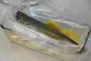 1. Если скумбрия была замороженной, то сначала разморозить её. У свежей скумбрии отрезать голову и плавники. Тушку рыбы выпотрошить, аккуратно удалив желчный пузырь и черную пленку,еще раз вымыть в холодной воде и обсушить бумажными полотенцами.