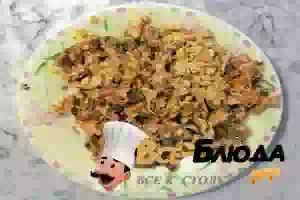 5. Все перемешать, посолить, поперчить, заправить майонезом. За счет обжаривания, ингредиенты уже достаточно влажные, поэтому майонез используется скорее для вкуса.