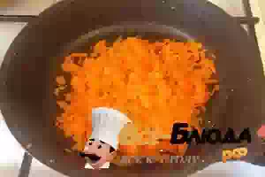 3. Морковь почистить, натереть на крупной терке, обжарить в той же сковороде до мягкости, помешивая. При необходимости подлить растительное масло.