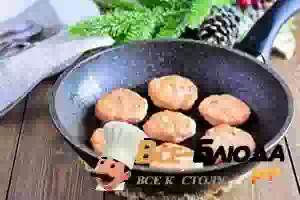 3. На сковороде разогреть растительное масло. Смочить руки в воде и слепить небольшие котлетки. Обжарить на среднем огне 2-3 минуты.