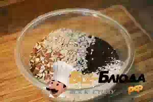 1. Смешайте все сухие ингредиенты, кроме фиников и клюквы.