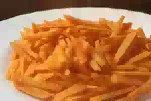 2. Картофель нарежьте брусочками шириной 1-1,5 см.