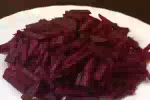 3. Остальные овощи нарежьте соломкой. Чем тоньше нарежете, тем быстрее борщ приготовится (я нарезала толщиной около 2 мм). Сперва нарежьте лук.