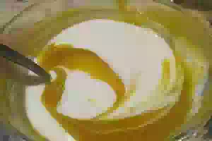 6. В оставшееся пюре влейте мацони.