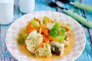 12. Диетическая рыба с овощами готова. Подавайте блюдо на обед в горячем виде.
